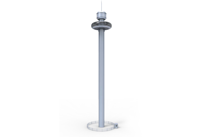 觀景塔可容納60人,運營高效。塔體配備配重裝置,抵消艙體大部分重量,降低提升所需功率,從而達到降低運營成本的效果。塔底配置緩沖裝置,為乘客提供輕緩的乘坐體驗,讓乘客在舒適的環(huán)境中飽覽周邊美景