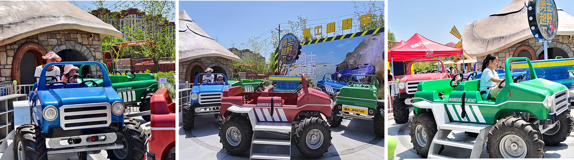 勇?越野?,以越野?為主題,?體繞中?旋轉(zhuǎn),同時(shí)在路軌上設(shè)有兩個(gè)障礙坡。通過(guò)坡道產(chǎn)?短暫的懸空狀態(tài),讓游客體驗(yàn)?躍的感覺(jué)。整體包裝設(shè)計(jì)采?越野?狂野的造型,巨?的輪胎加以?屬質(zhì)感的?殼,仿佛西部?仔馳騁于?壁,體驗(yàn)狂野的感覺(jué),深受?童/親?游客的喜愛(ài)。