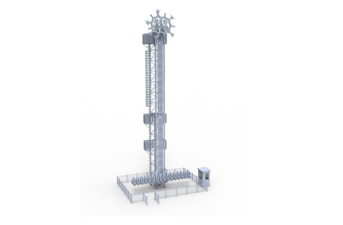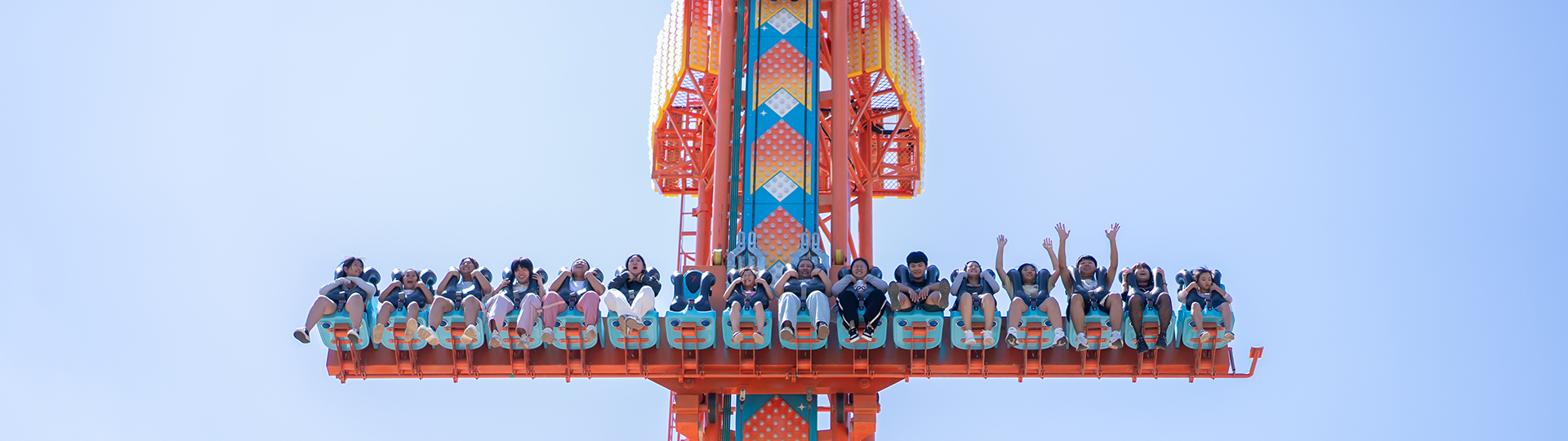 跳躍云霄以跳躍為主題,?六座座艙沿著豎直的?柱軌道作上升、下降和連貫的跳躍運動,使乘客在超重與失重的過程中體驗到跳躍樂趣。